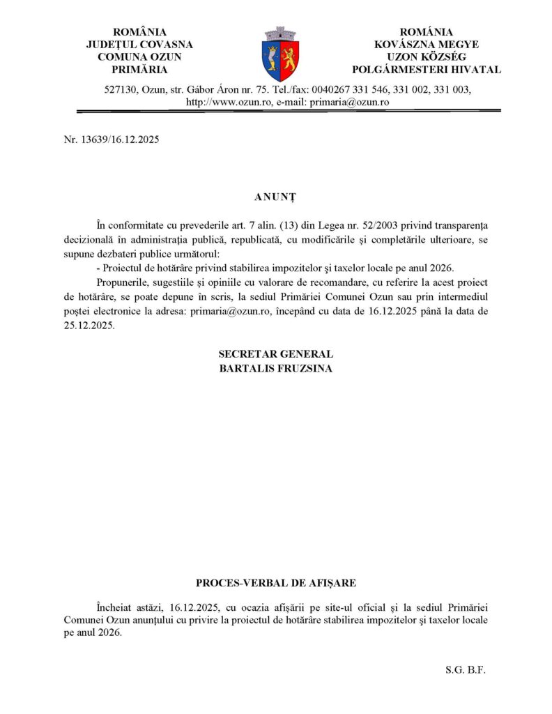 Érdeklődni az uzoni polgármesteri hivatal székhelyén vagy a 0267/331002 –es telefonon lehet.