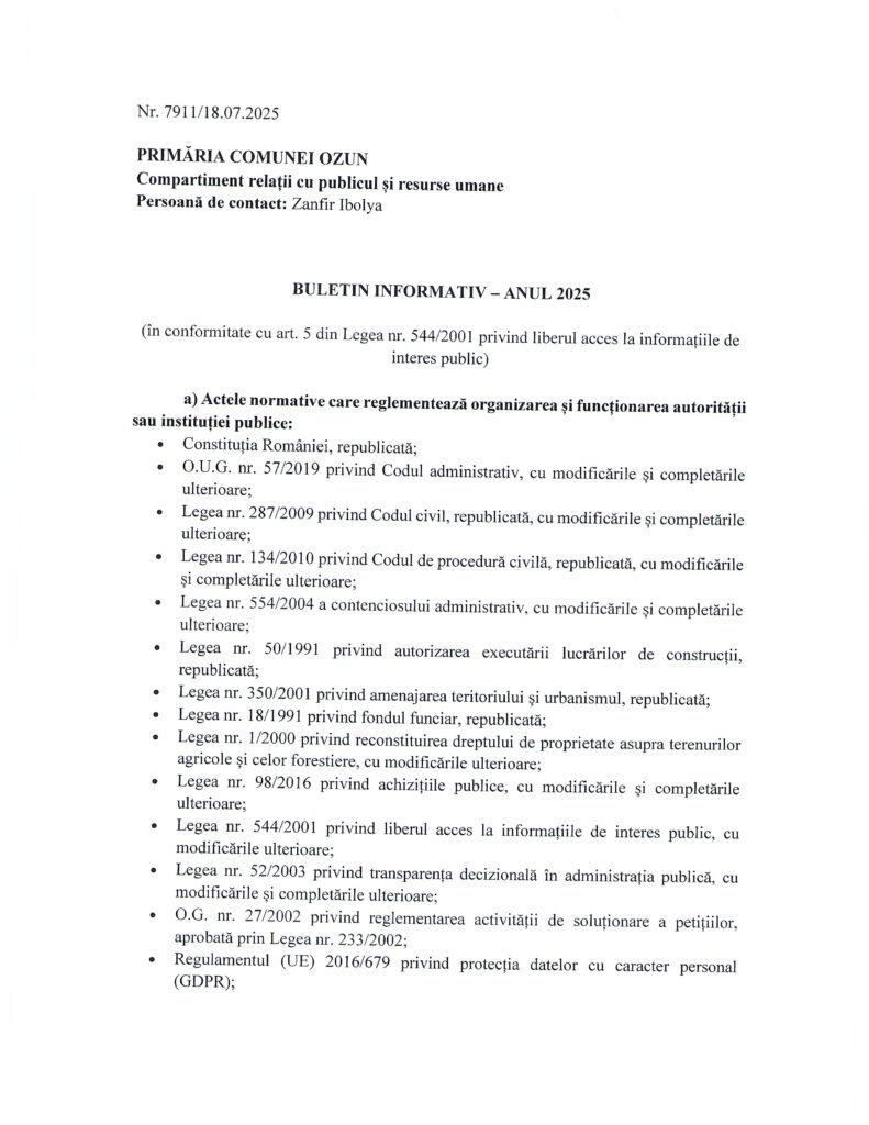 Primăria Comunei Ozun, in perioada 18.10.2016 – 20.10.2016 organizează concurs (examen) pentru ocuparea funcţiei vacante de: